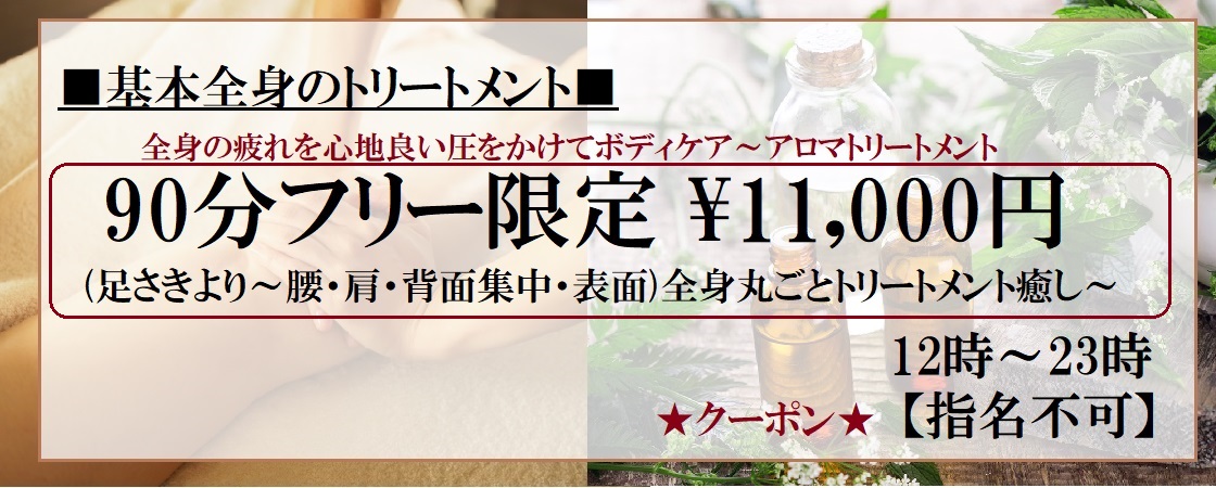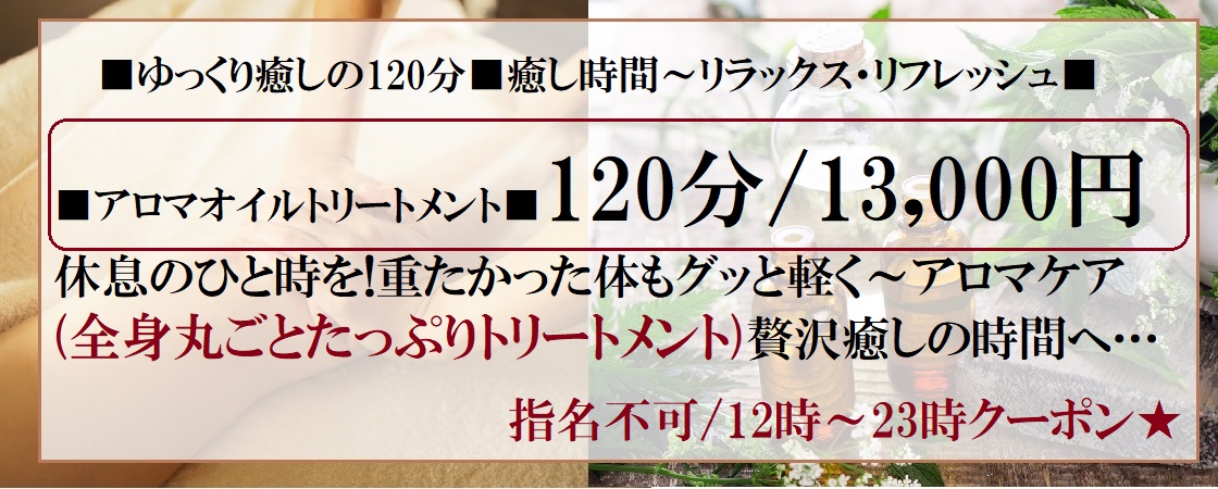 2024.12.01(日) イベント指名込み90分 120分は!! 2024.11.03(日) クーポン!90分11,000円・120分13,000円★フリーコース 2024.10.01(火) 10月クーポン★癒しのオールハンド★ 2024.08.04(日) クーポン☆23時迄☆ご利用いただけます! 2024.07.01(月) クーポン!90分11,000円・120分13,000円★フリーコース 2024.05.14(火) イベント指名込み90分 120分は!! 全て見る今週おすすめランキングRANKING